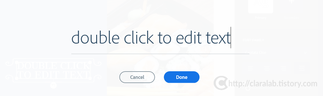 선택된 디자인의 가운데에 있는 텍스트를 더블 클릭하면 아래와 같이 콘텐츠 내용을 입력하라는 화면이 나타납니다. 여기에 원하는 텍스트를 넣어주면 됩니다.